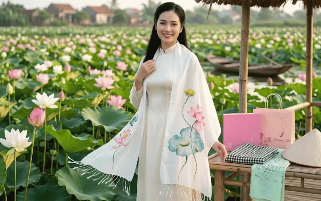 Từ chất liệu thiên nhiên thuần khiết, tạo ra sự mềm mại, tinh tế trên tường đường nét. Các sản phẩm khăn lụa truyền thống được kết tinh từ các làng nghề trứ danh để trở thành món quà đặc sắc cho người phụ nữ. Khăn lụa tơ tằm Việt đã trở thành sản phẩm được biết đến rộng rãi và được ưa chuộng trên toàn cầu với các thương hiệu làng nghề như Lụa Hà Đông, Lụa Bảo Lộc, Lụa Nha Xá…