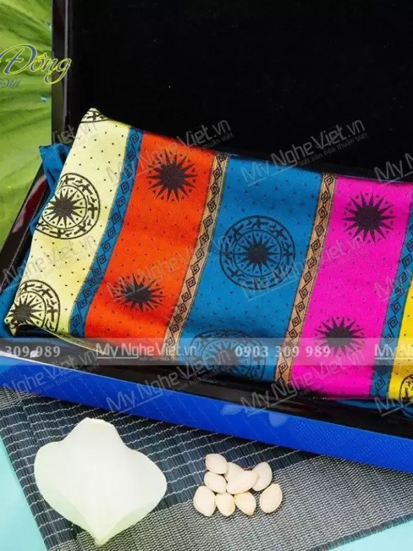 Combo Khăn Lụa Hà Đông + Hộp Sơn Mài Vẽ Sen Cao Cấp