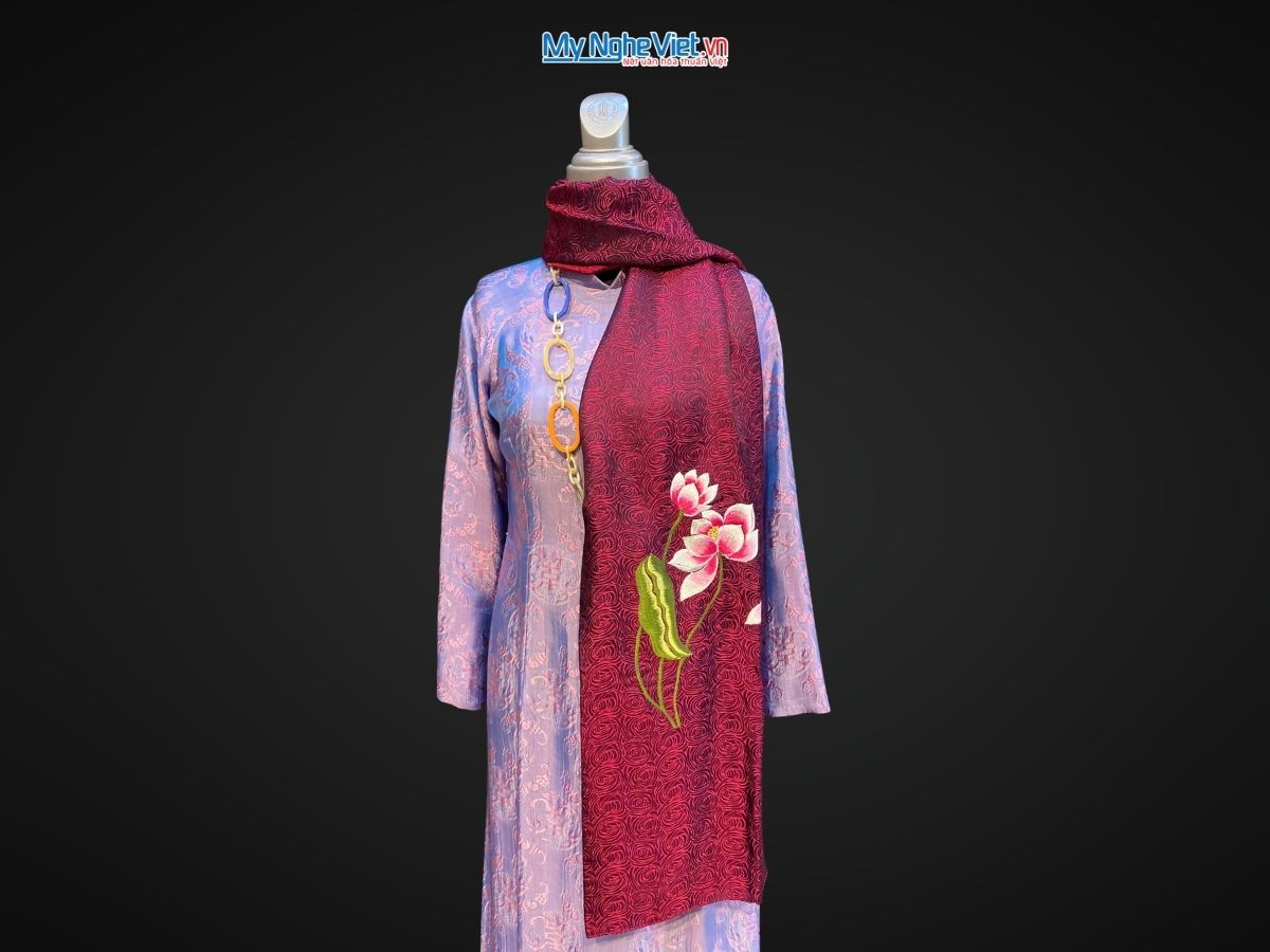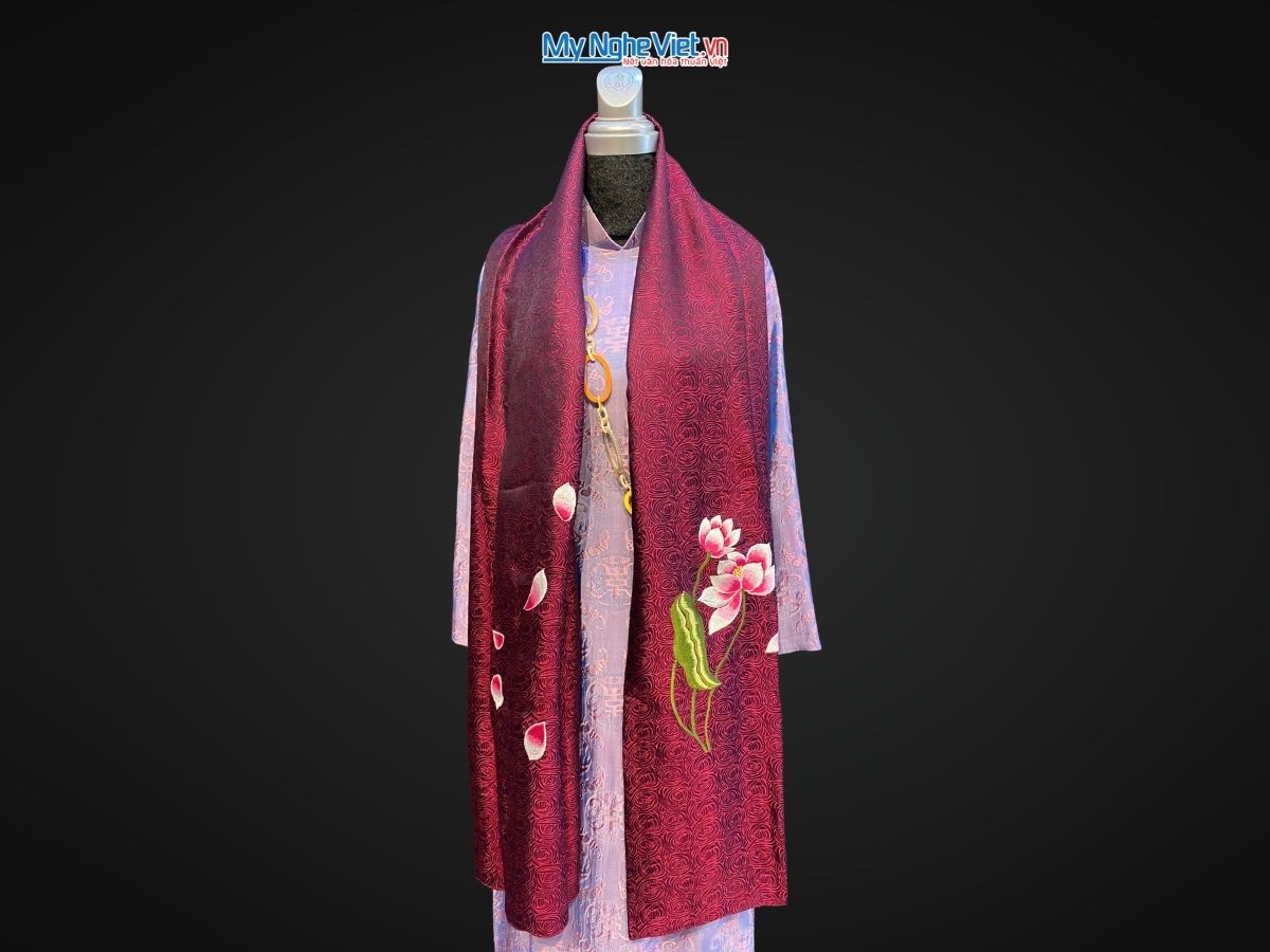 Khăn lụa tơ tằm thêu sen – Nét đẹp tinh hoa lụa Việt