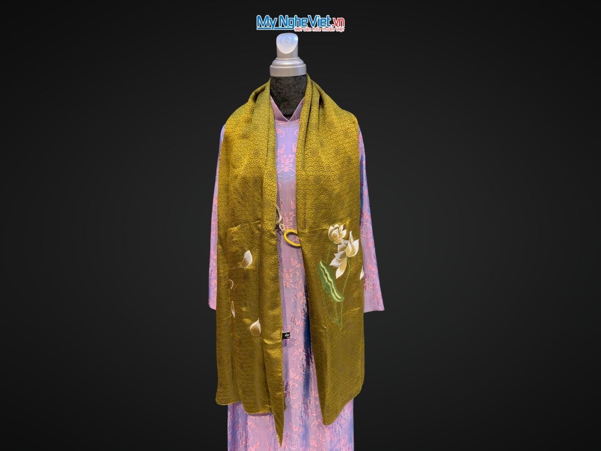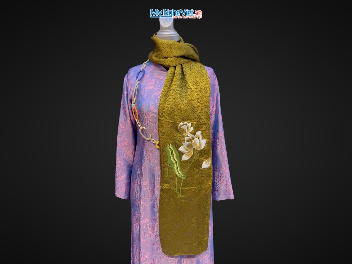 Khăn choàng cổ lụa tơ tằm thêu sen – Nét đẹp tinh hoa lụa Việt