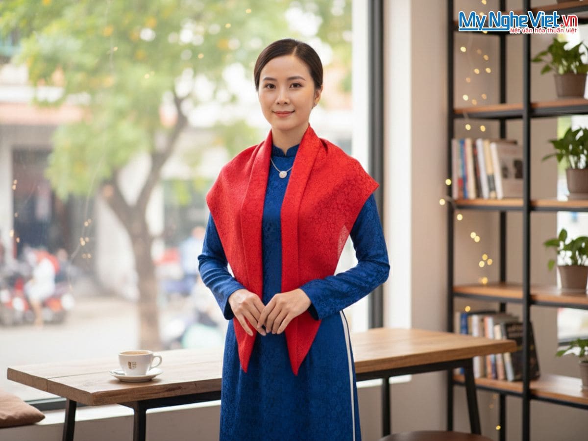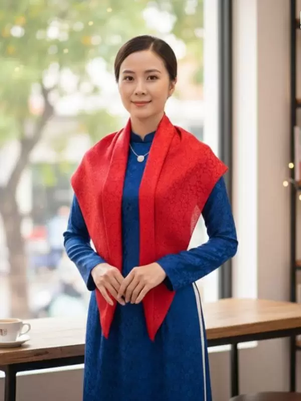 Tông màu đỏ mang lại cảm giác ấm áp, nổi bật nhưng vẫn giữ được nét trang nhã. Gam màu này giúp khăn dễ dàng phối cùng áo dài, trang phục dự tiệc hoặc các dịp lễ quan trọng, tạo điểm nhấn tinh tế mà không quá rực rỡ.