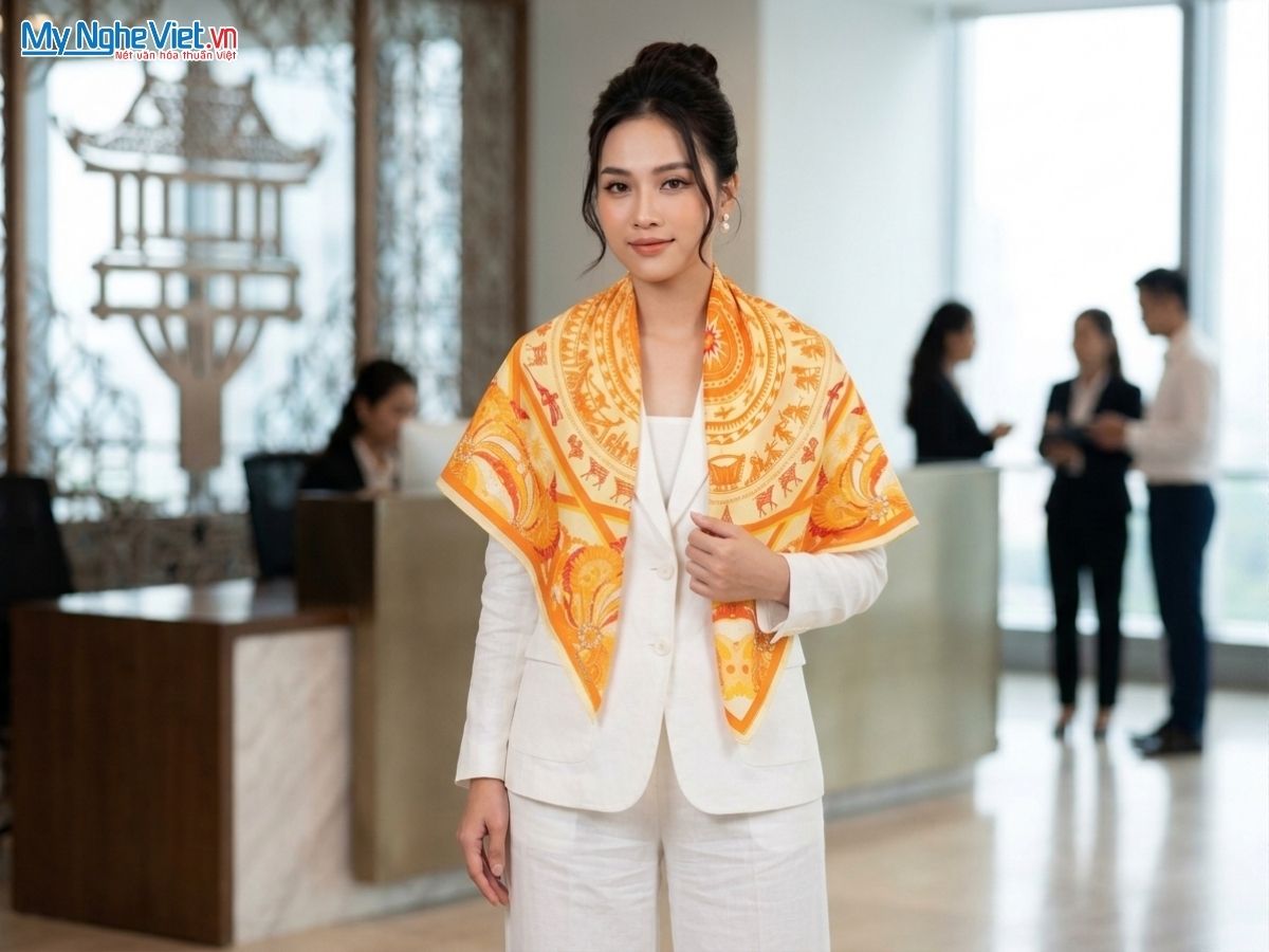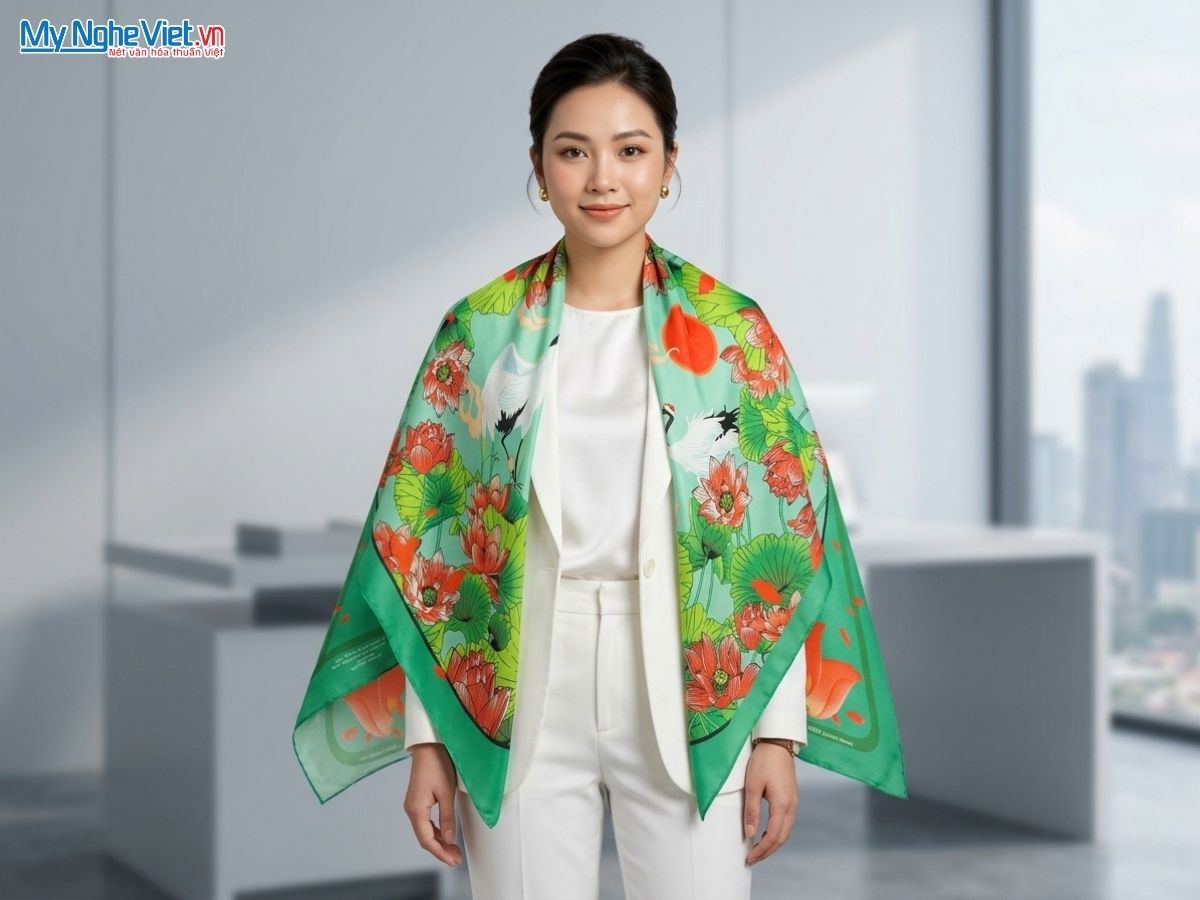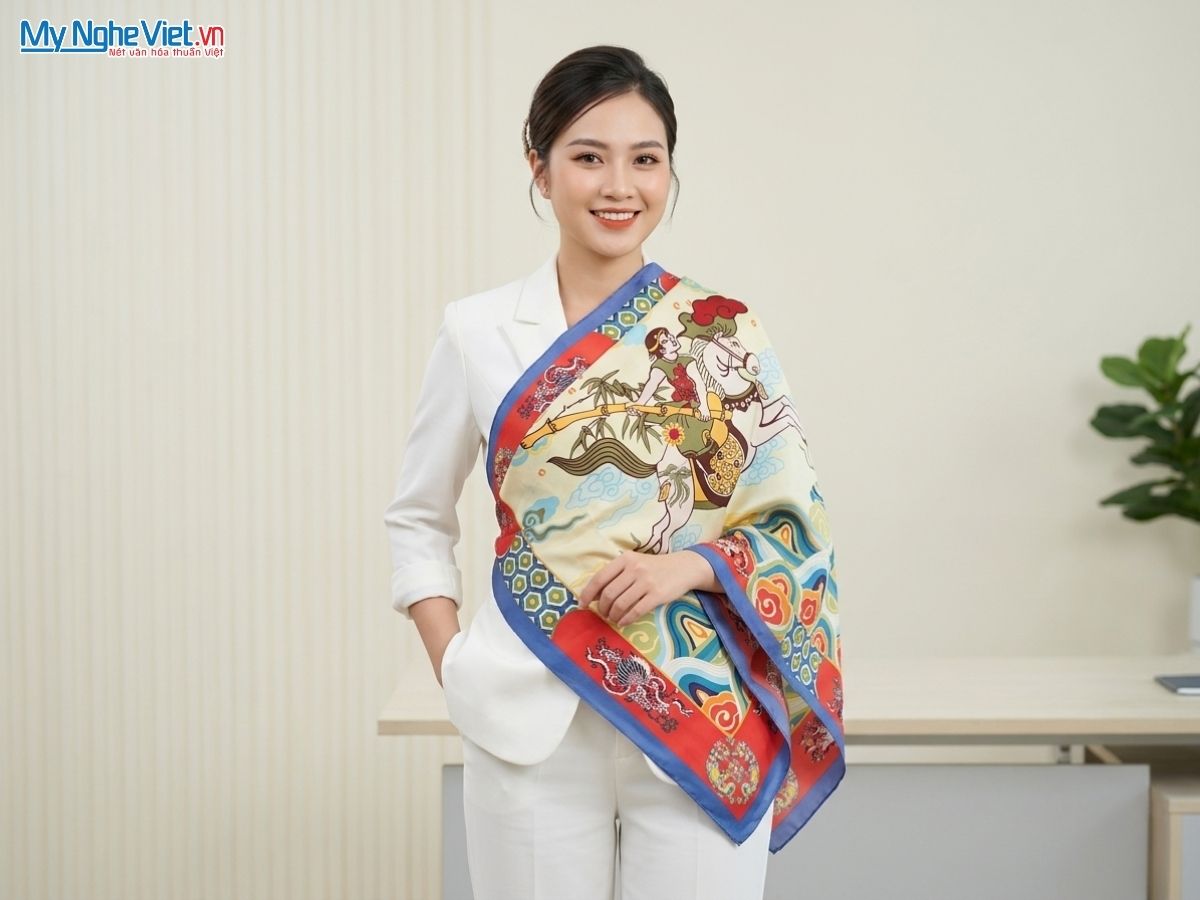 Không chỉ là một phụ kiện thời trang, khăn lụa tơ tằm còn là món quà tặng tinh tế dành cho bạn bè, đối tác hoặc du khách. Những họa tiết mang cảm hứng văn hóa và nghệ thuật giúp chiếc khăn trở thành món quà lưu niệm mang dấu ấn riêng.