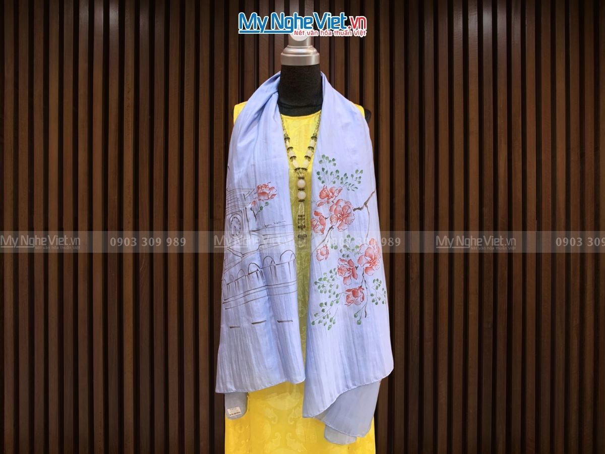 Khăn lụa từ lâu đã trở thành phụ kiện không thể thiếu trong tủ đồ của người phụ nữ, góp phần tôn lên vẻ đẹp sang trọng, quý phái và đầy tinh tế. Nổi bật trong số đó là khăn lụa tơ tằm vẽ tay, một sự kết hợp hoàn hảo giữa nghệ thuật và thủ công Việt Nam. Với thương hiệu Lụa cao cấp do Mỹ Nghệ Việt phân phối tại thị trường Hồ Chí Minh. Chúng tôi tự tin mang đến cho Quý khách những sản phẩm lụa Việt được các nghệ nhân làng nghề thủ công sản xuất chính gốc.
