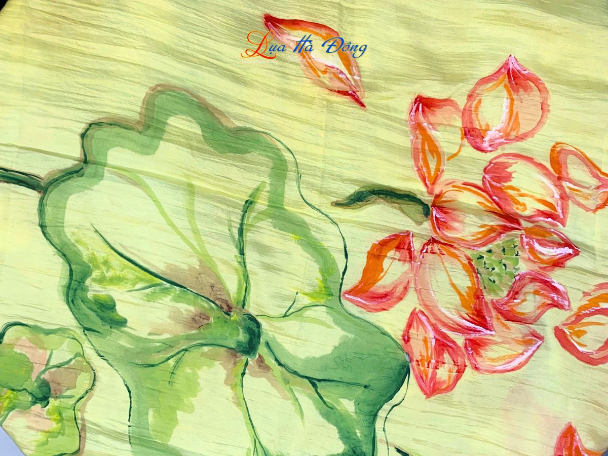 - Sắc thái Tinh tế: Màu sắc của sen thường là hồng phớt, trắng ngọc, kết hợp hài hòa trên nền lụa tự nhiên, tạo nên vẻ đẹp dịu dàng, quý phái.