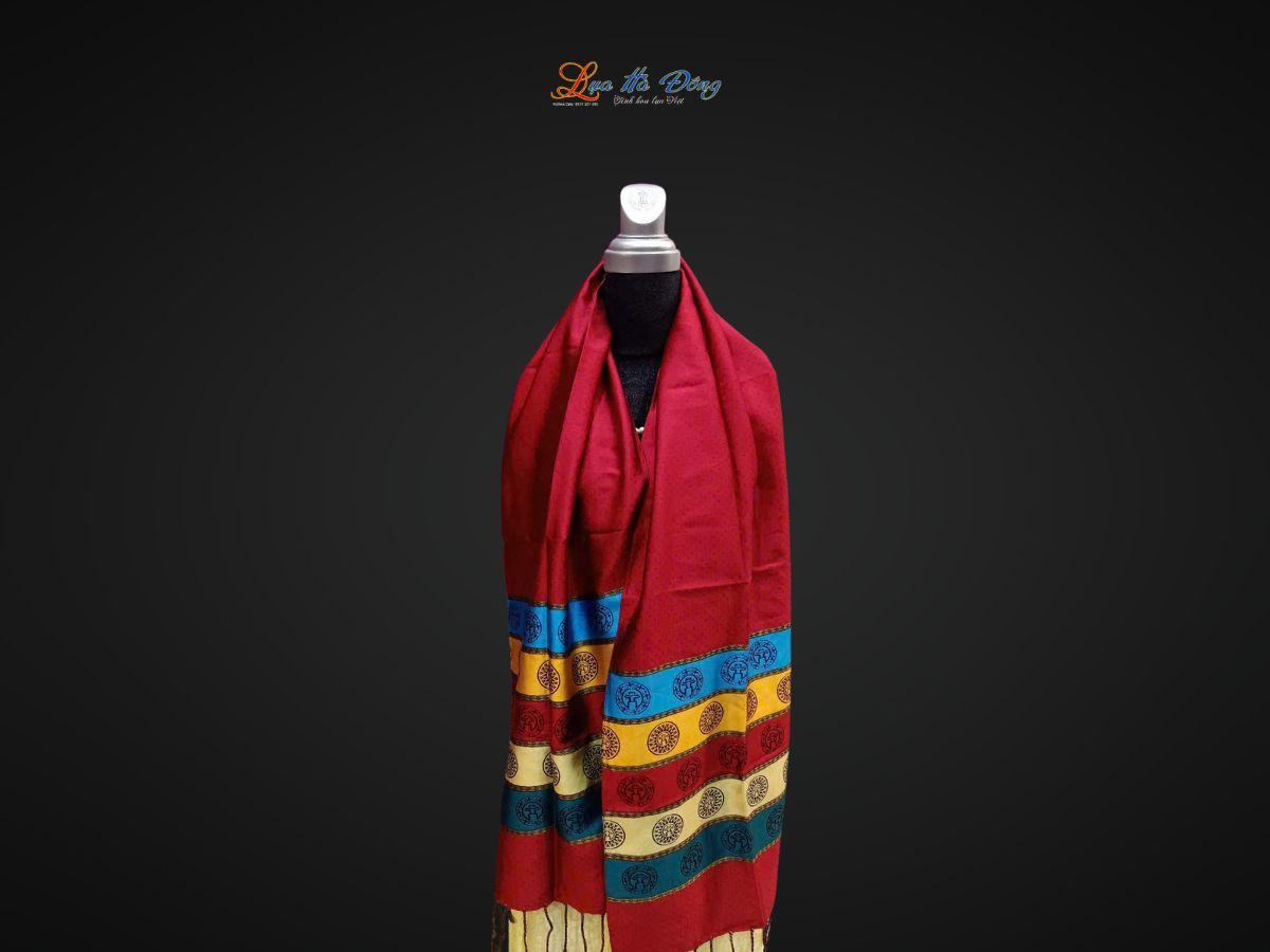 Họa tiết trống đồng trên chiếc khăn lụa là một trong những điểm nhấn đặc biệt nhất. Trống đồng Đông Sơn không chỉ là một nhạc cụ hay một hiện vật khảo cổ. Nó còn là biểu tượng của quyền lực, tín ngưỡng và sự phát triển vượt bậc của người Việt cổ. Mỗi đường nét, hoa văn trên mặt trống đồng đều kể lại câu chuyện về cuộc sống, lao động, và lễ hội của tổ tiên. Khi sở hữu một chiếc khăn lụa với họa tiết này, bạn không chỉ có một sản phẩm đẹp mà còn đang nắm giữ một phần lịch sử hào hùng.