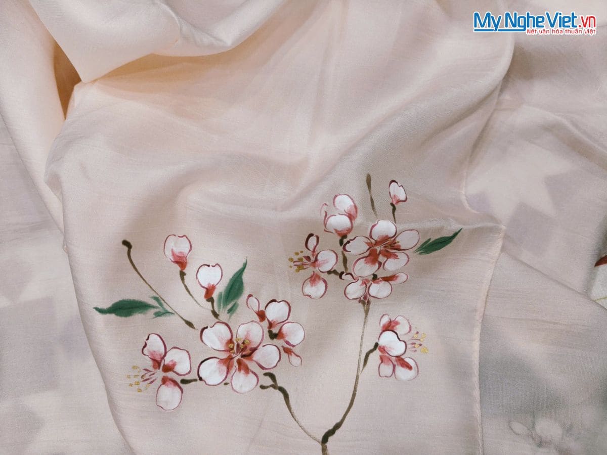 - Tinh Tế & Độc Bản: Họa tiết hoa sen, hoa đào, hoặc phong cảnh Việt Nam được vẽ trực tiếp lên lụa, tạo ra những tác phẩm độc nhất vô nhị. Sự tỉ mỉ trong từng cánh hoa, chiếc lá khiến chiếc khăn trở nên sống động, mang giá trị nghệ thuật cao.