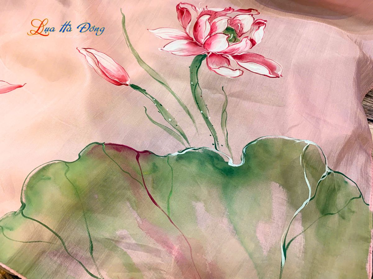 - Tinh Tế & Độc Bản: Họa tiết hoa sen, hoa đào, hoặc phong cảnh Việt Nam được vẽ trực tiếp lên lụa, tạo ra những tác phẩm độc nhất vô nhị. Sự tỉ mỉ trong từng cánh hoa, chiếc lá khiến chiếc khăn trở nên sống động, mang giá trị nghệ thuật cao.