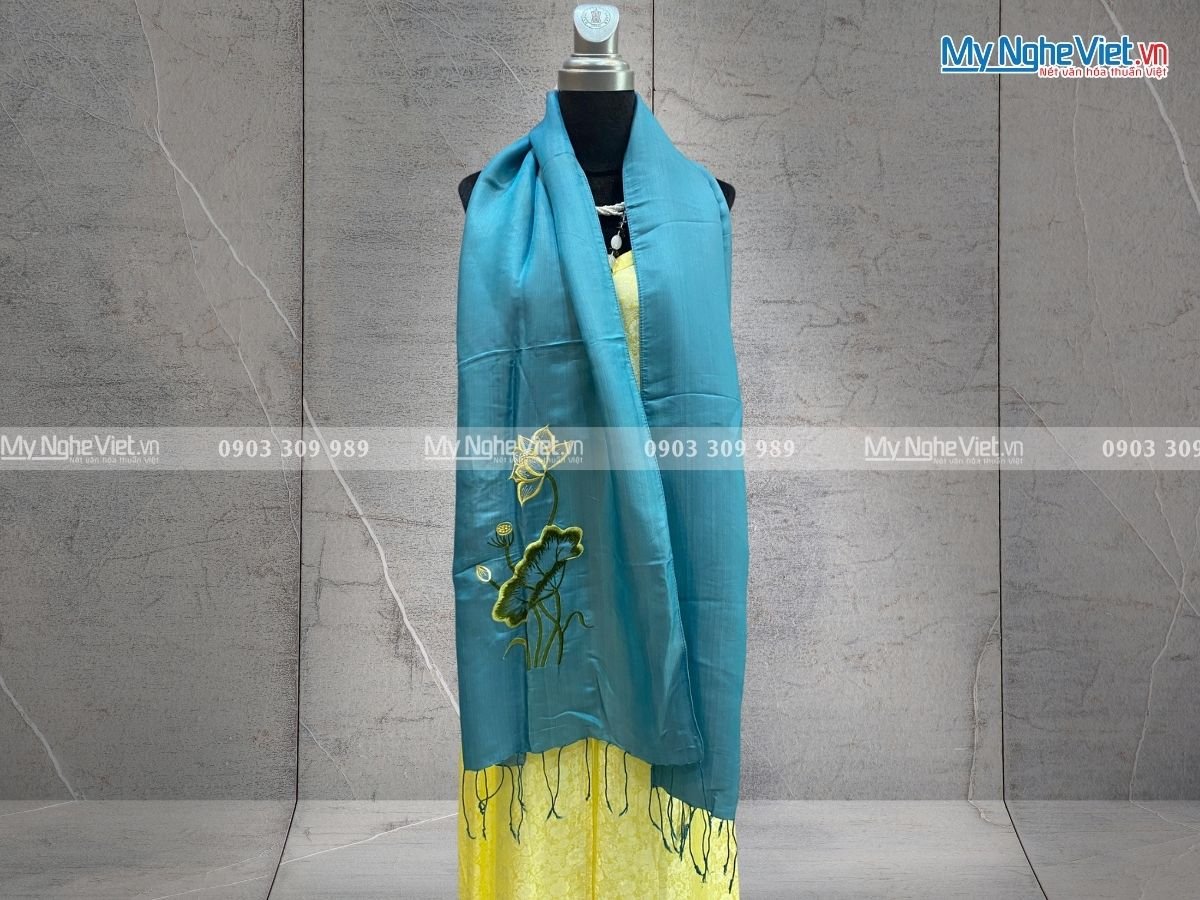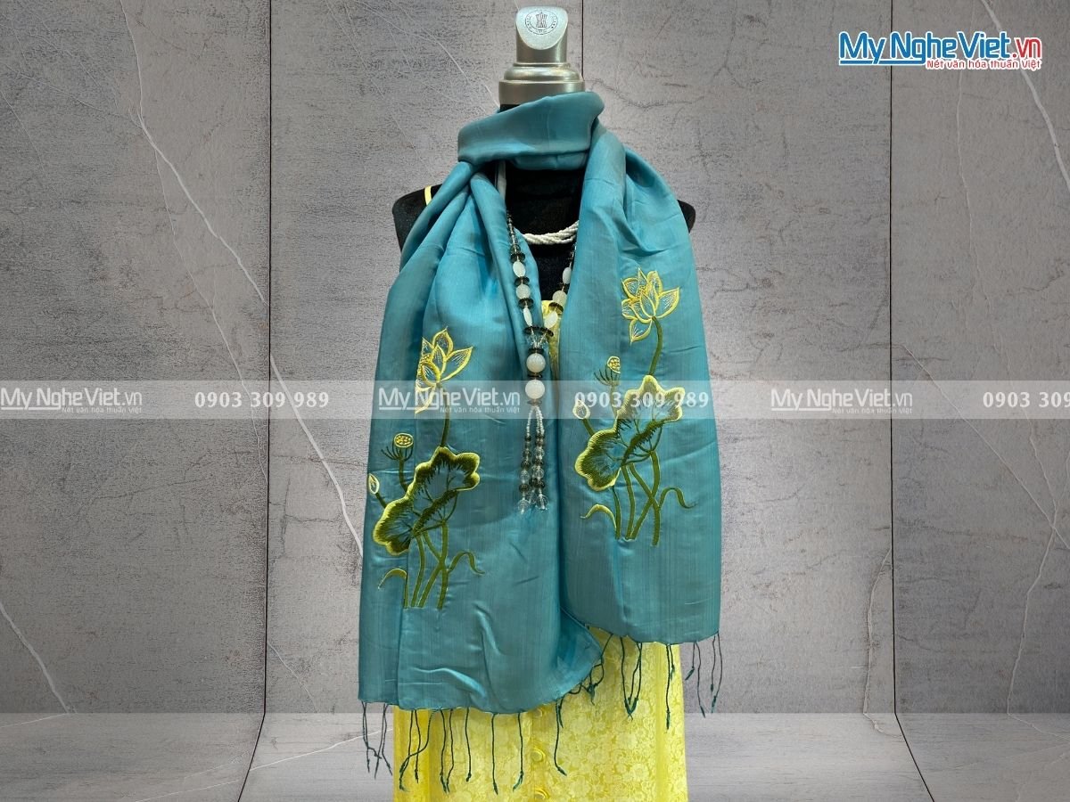 Khăn lụa từ lâu đã trở thành phụ kiện không thể thiếu trong tủ đồ của người phụ nữ, góp phần tôn lên vẻ đẹp sang trọng, quý phái và đầy tinh tế. Nổi bật trong số đó là khăn lụa tơ tằm thêu sen. Một sự kết hợp hoàn hảo giữa nghệ thuật và thủ công Việt Nam. Với thương hiệu Lụa Hà Đông do Mỹ Nghệ Việt phân phối tại thị trường Hồ Chí Minh. Chúng tôi tự tin mang đến cho Quý khách những sản phẩm lụa Việt được các nghệ nhân làng nghề thủ công sản xuất chính gốc.