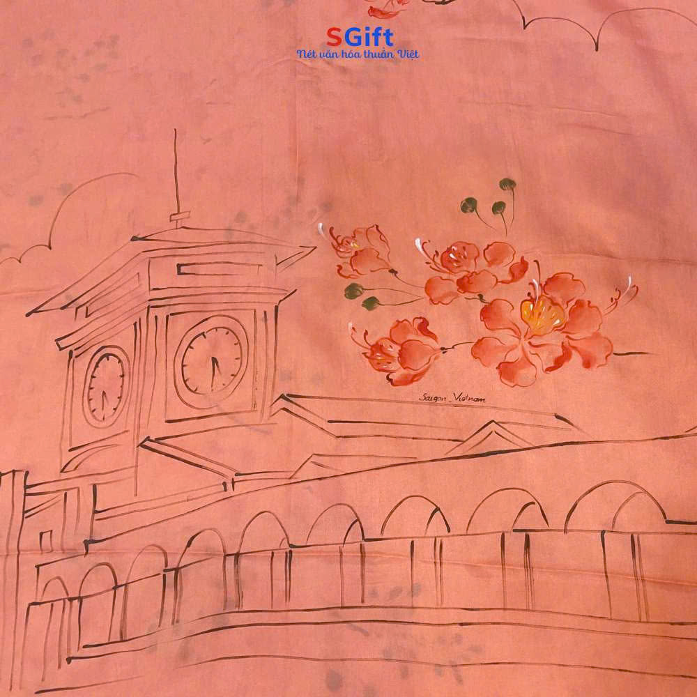 • 01 Khăn lụa tơ tằm vẽ tay chợ Bến Thành