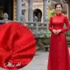Vải lụa Hà Đông từ lâu đã được xem là chất liệu cao cấp và sang trọng để may áo dài, đặc biệt là áo dài cưới. Sự kết hợp giữa vải lụa mềm mại và áo dài cưới mang đến cho cô dâu không chỉ sự thoải mái mà còn là sự tự hào về vẻ đẹp truyền thống và nét thanh lịch của người Việt Nam.